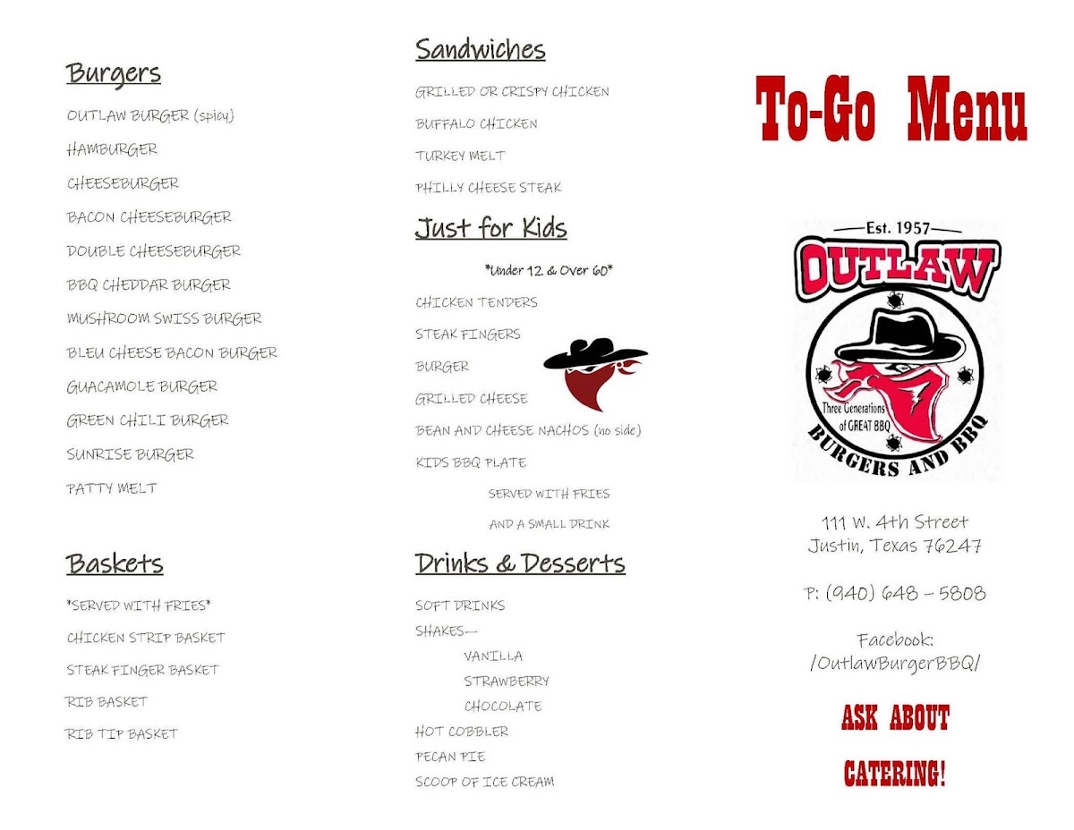 Nestled in the heart of Justin, TX, Outlaw Burgers & BBQ offers a mouthwatering selection that brings together the best of burgers and BBQ. With its rustic, old Western atmosphere, this family-friendly spot serves up a variety of hearty dishes to satisfy any food lover.